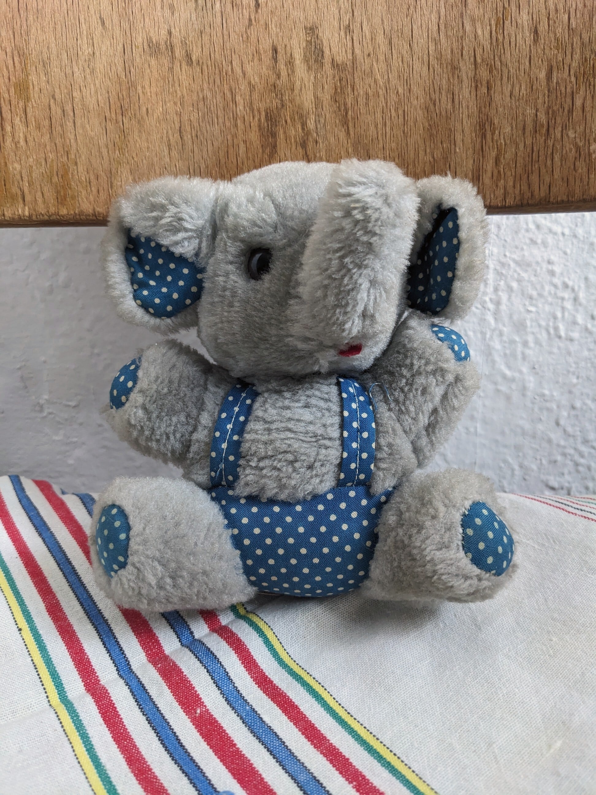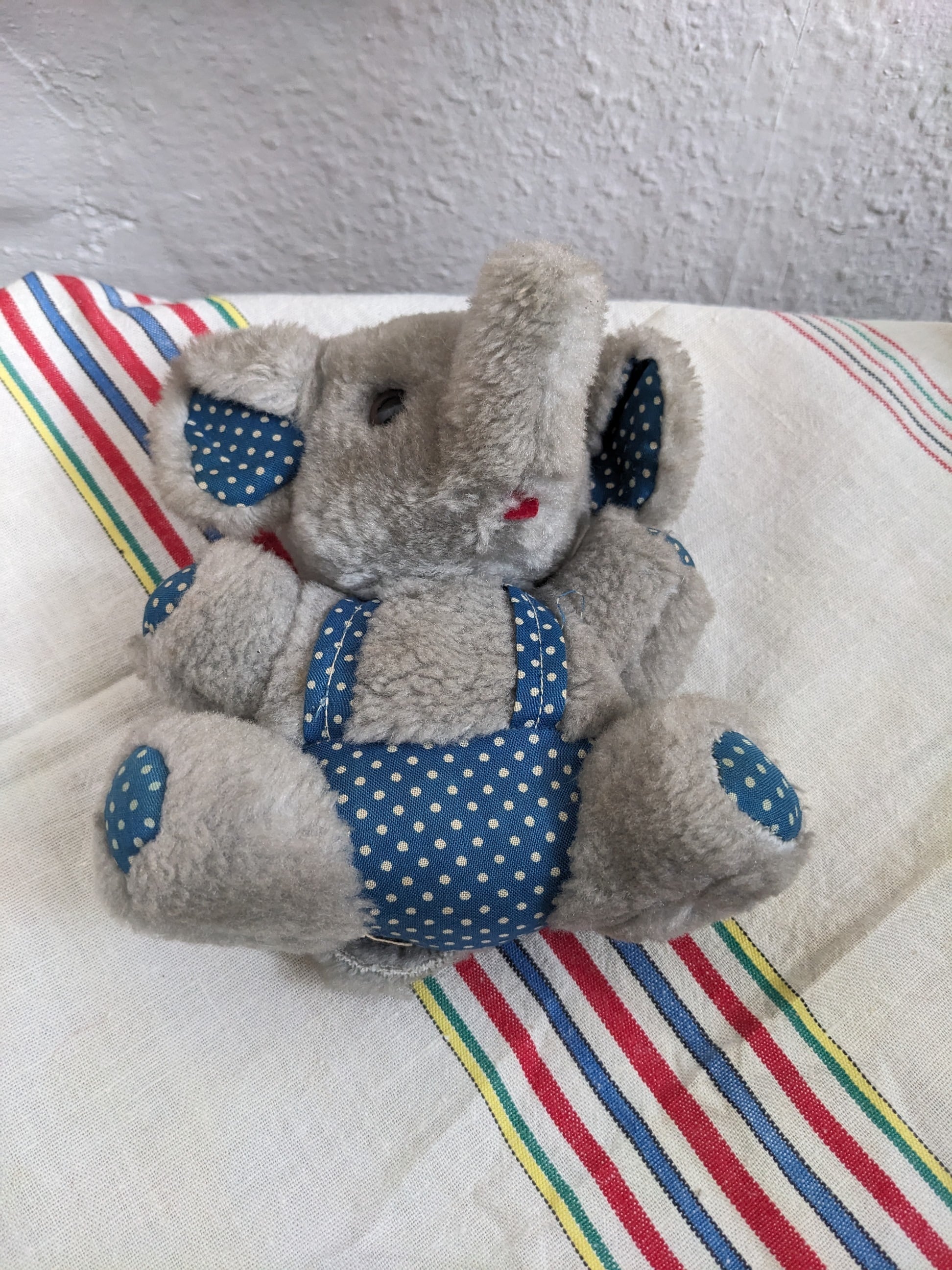 【Toys】From France/ チビコロぷわぷわ水玉つなぎのゾウさん