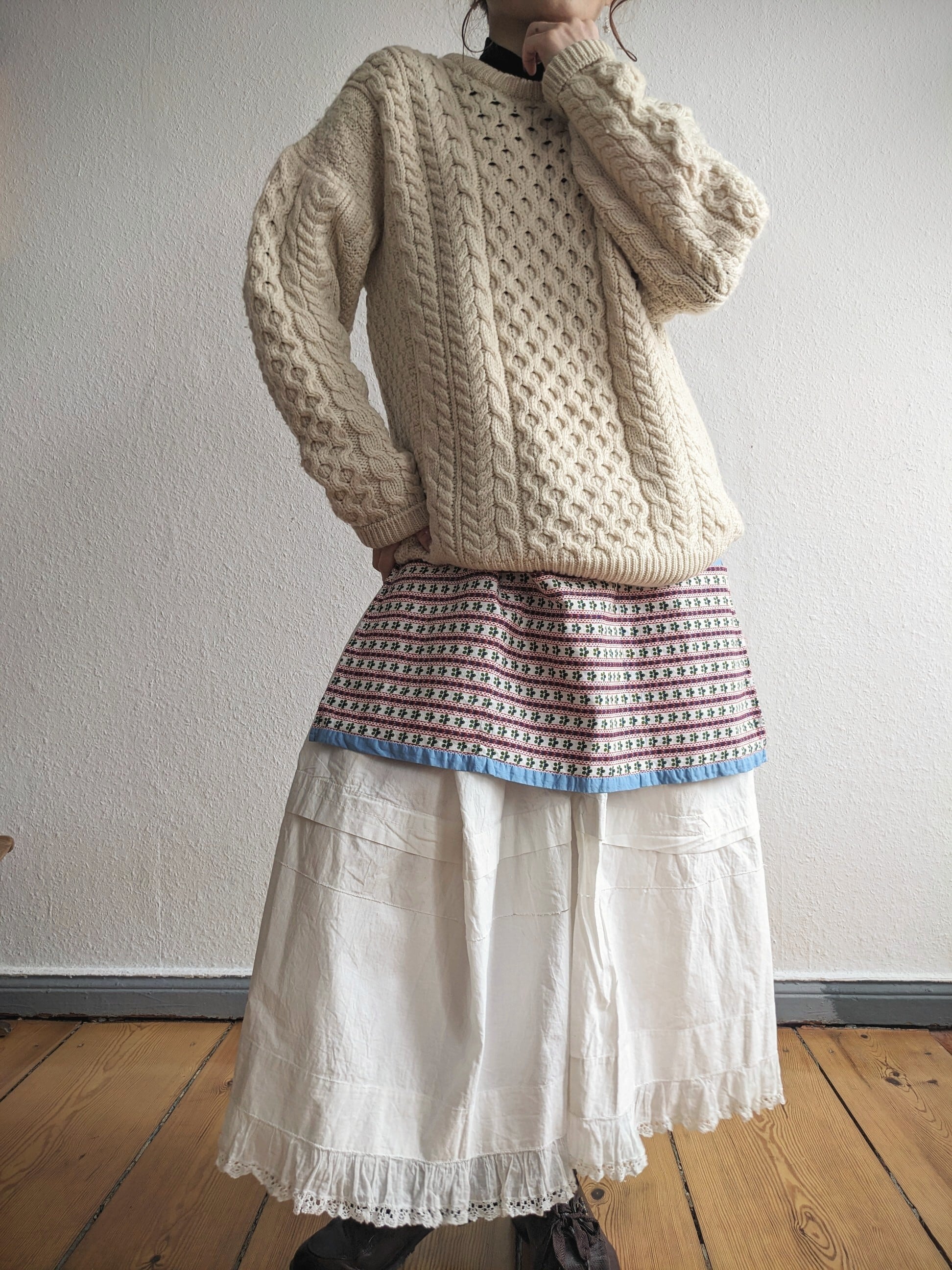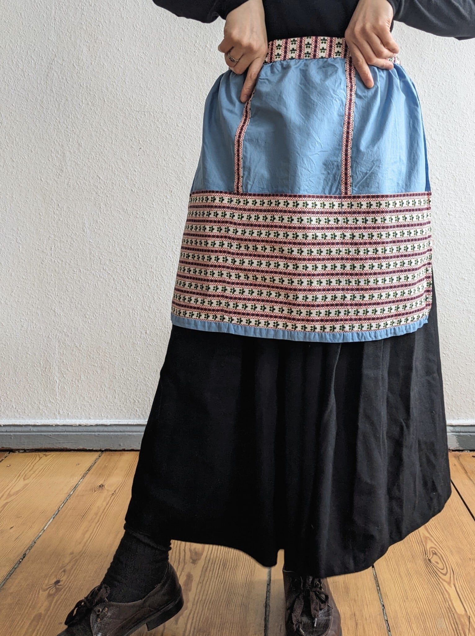 ドイツで見つけた、vintageのチロル テープのような柄がかわいらしいコットンエプロン。