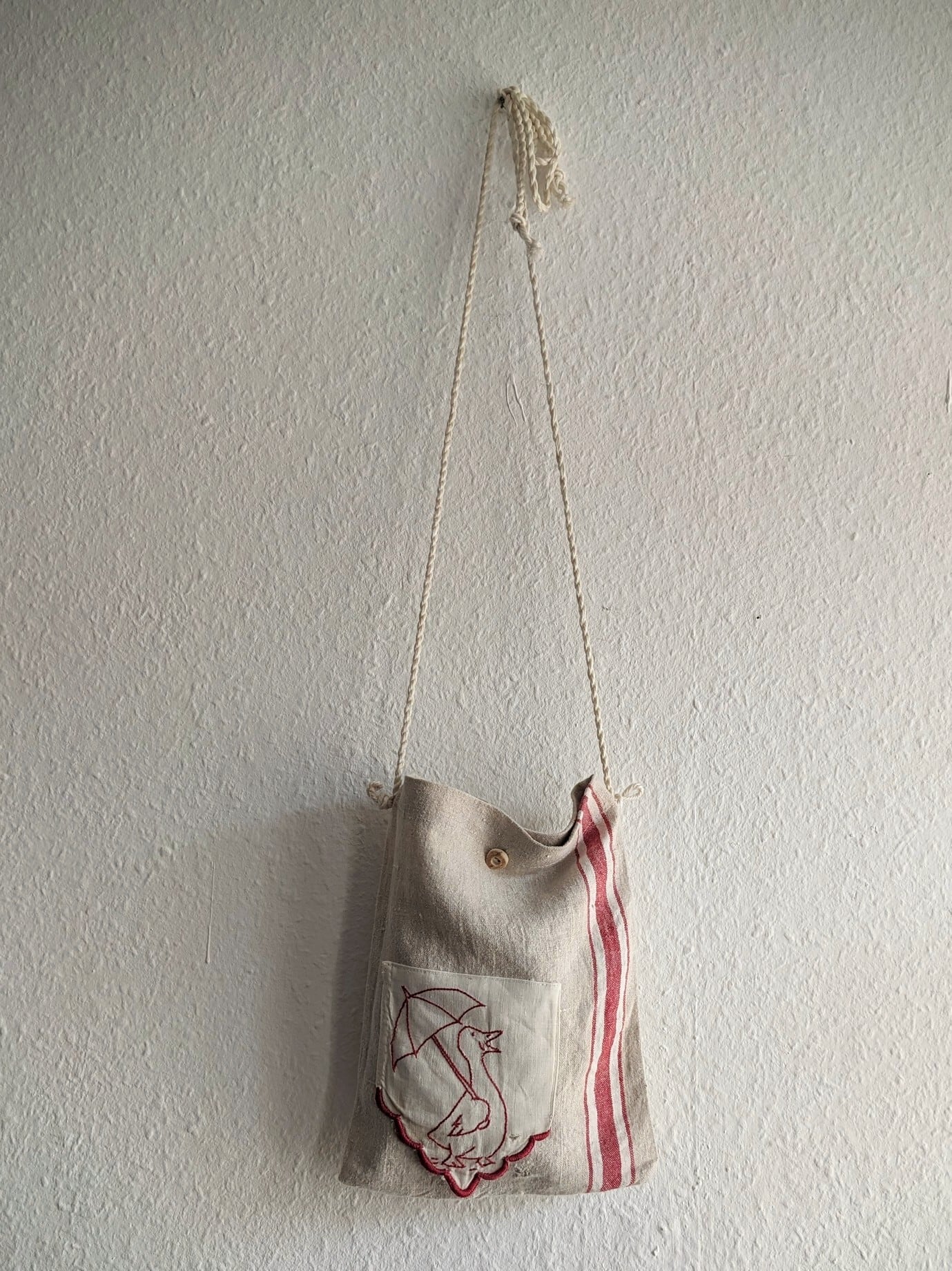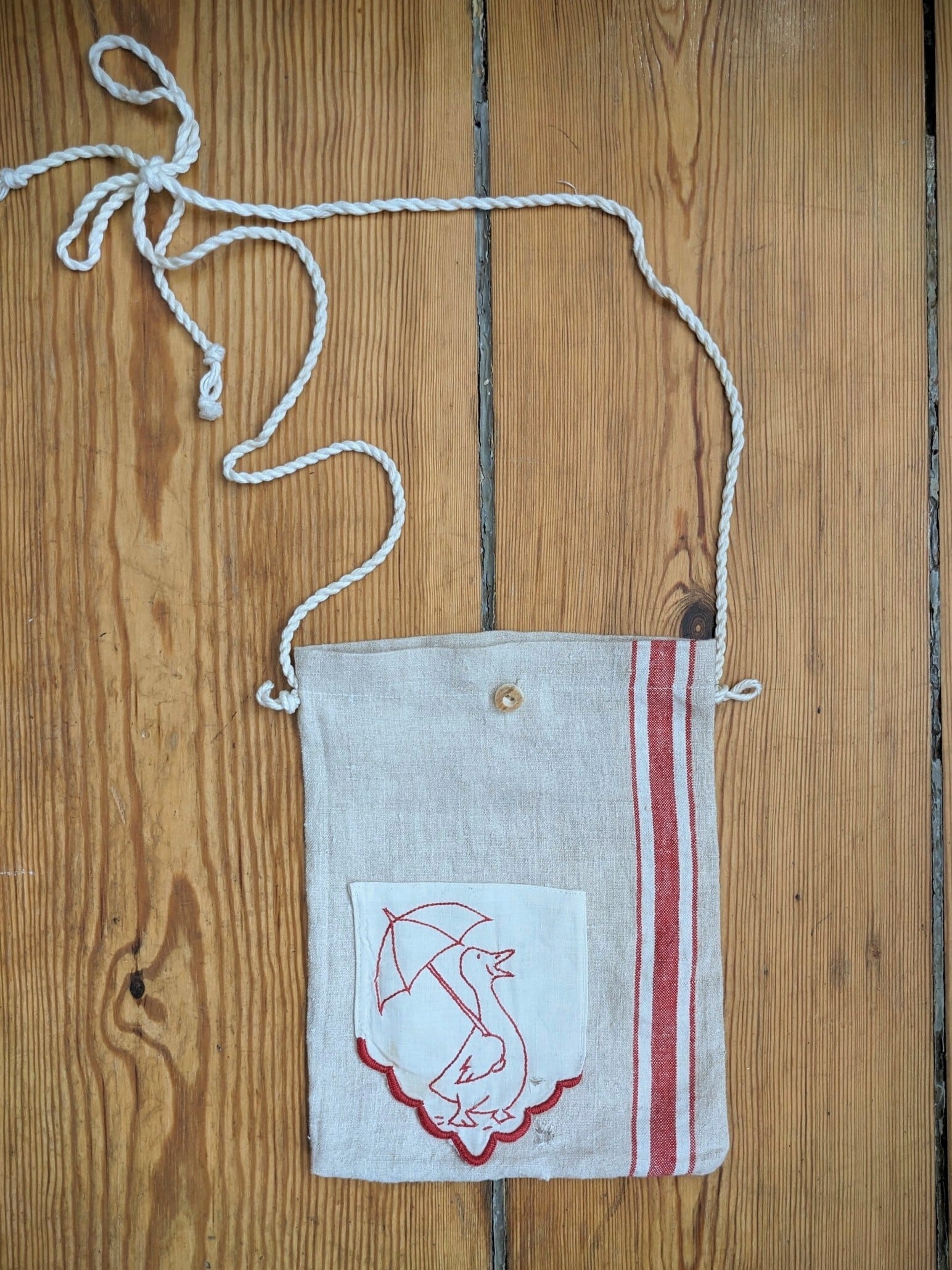 ドイツのヴィンテージベッドリネンを使って作られた、ミニショルダーバッグです。