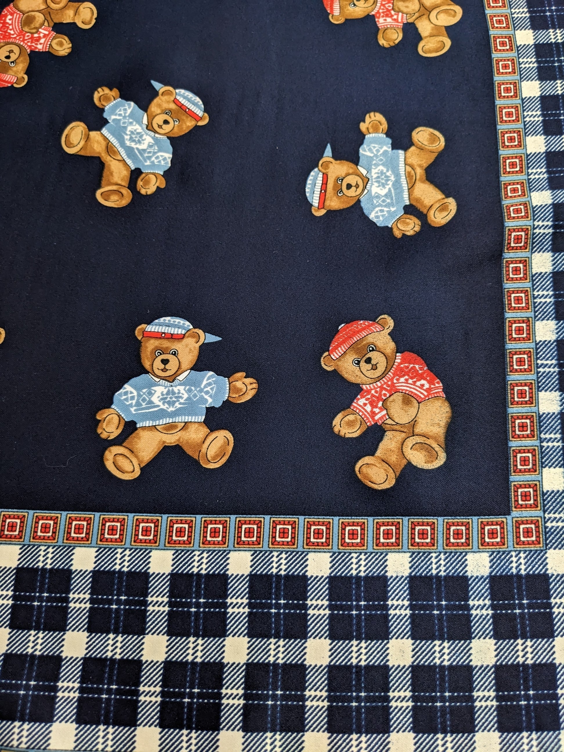 キャップを後ろかぶりしている姿がたまらなく可愛い、くまちゃん柄のスカーフです。