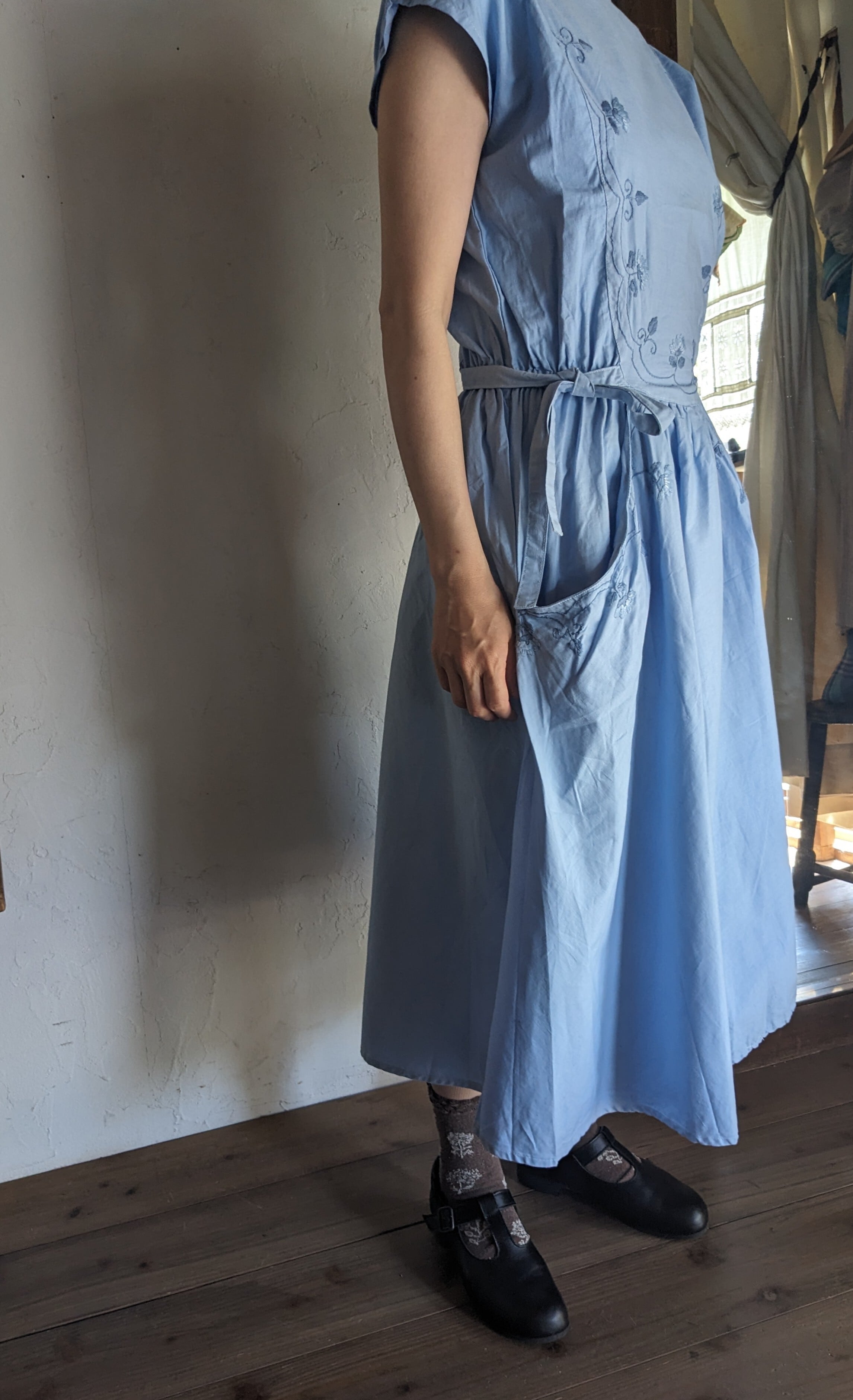 Vintage_sky blue cotton dress _ from Germany